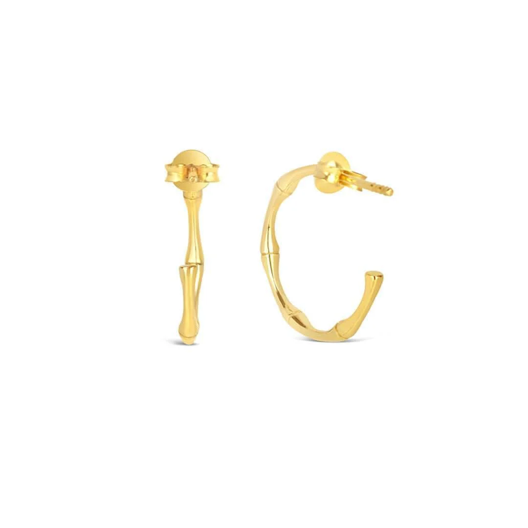 Our Bamboo Hoop Earrings in gold are the ideal everyday hoops but elegant enough for occasion wear. Made of 24-carat gold and sterling silver, our gold vermeil bamboo hoop earrings measure 2 cm in diameter and are fastened with a traditional butterfly fastening. These lovely bamboo-style hoop earring will add the finishing touch to any outfit and can be worn for day or evening.