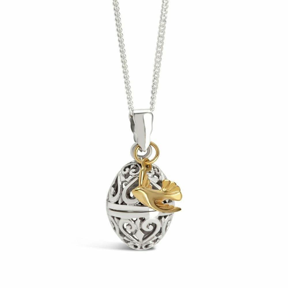 Our pretty, filigree egg locket makes a delightful gift. Add a sweet little sterling silver, 18 carat gold or rose gold vermeil bird charm for added interest. This necklace opens to hold a hidden message or a tiny keepsake.