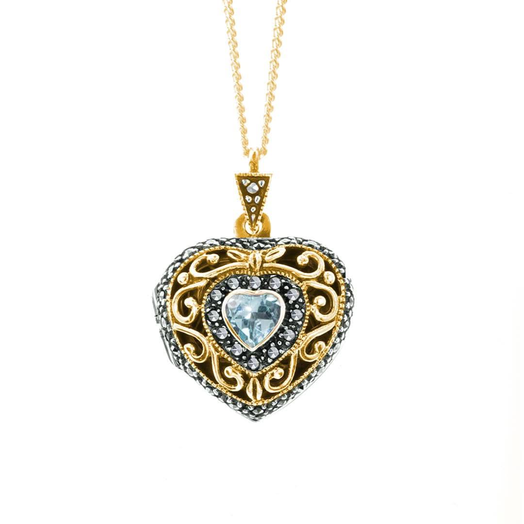 Blue Topaz Vintage Heart Locket | Gold