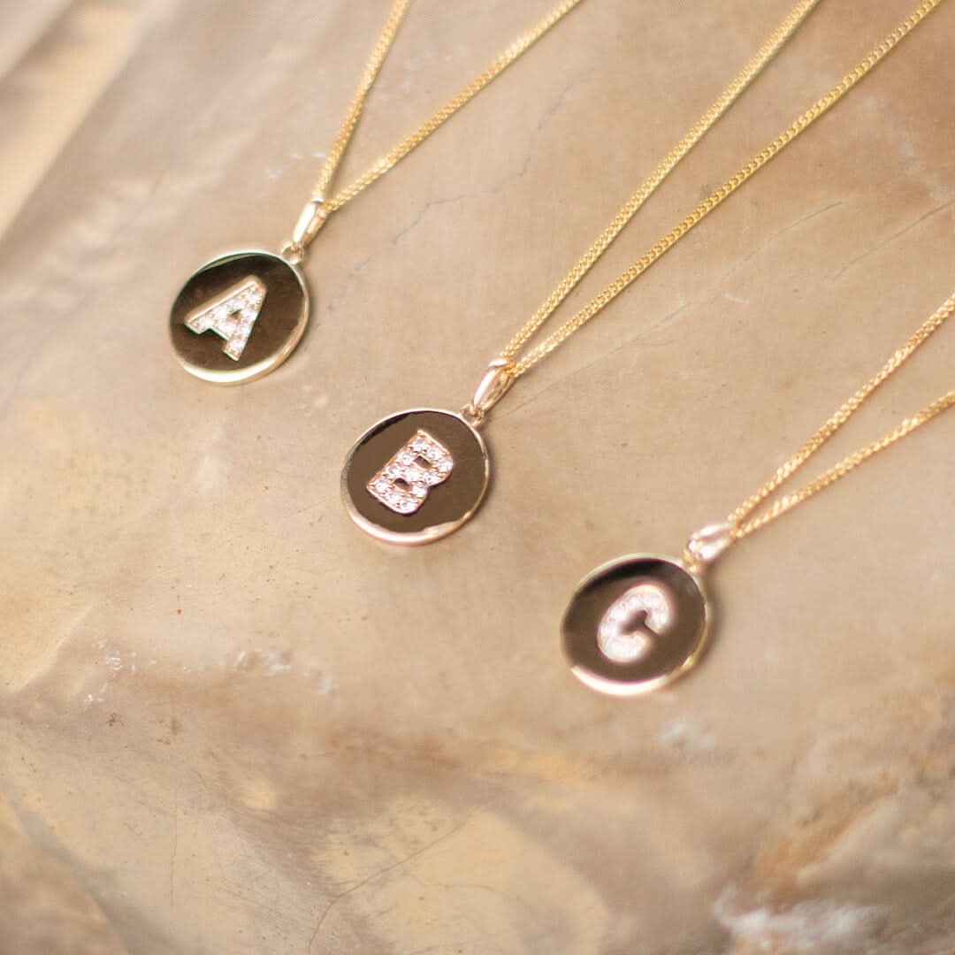 Make a sparkling initial impression with our diamond and solid gold Initial Disc Necklaces. Handcrafted in 9-carat gold, these diamond, personalised capital letter pendants make fabulous luxury gifts. A classic design that never goes out of style, our alphabet disc necklaces feature up to eleven individual, brilliant white diamonds. These diamond initial disc pendants will become your everyday favourites. An elevated and distinctive take on the popular initial pendant trend.