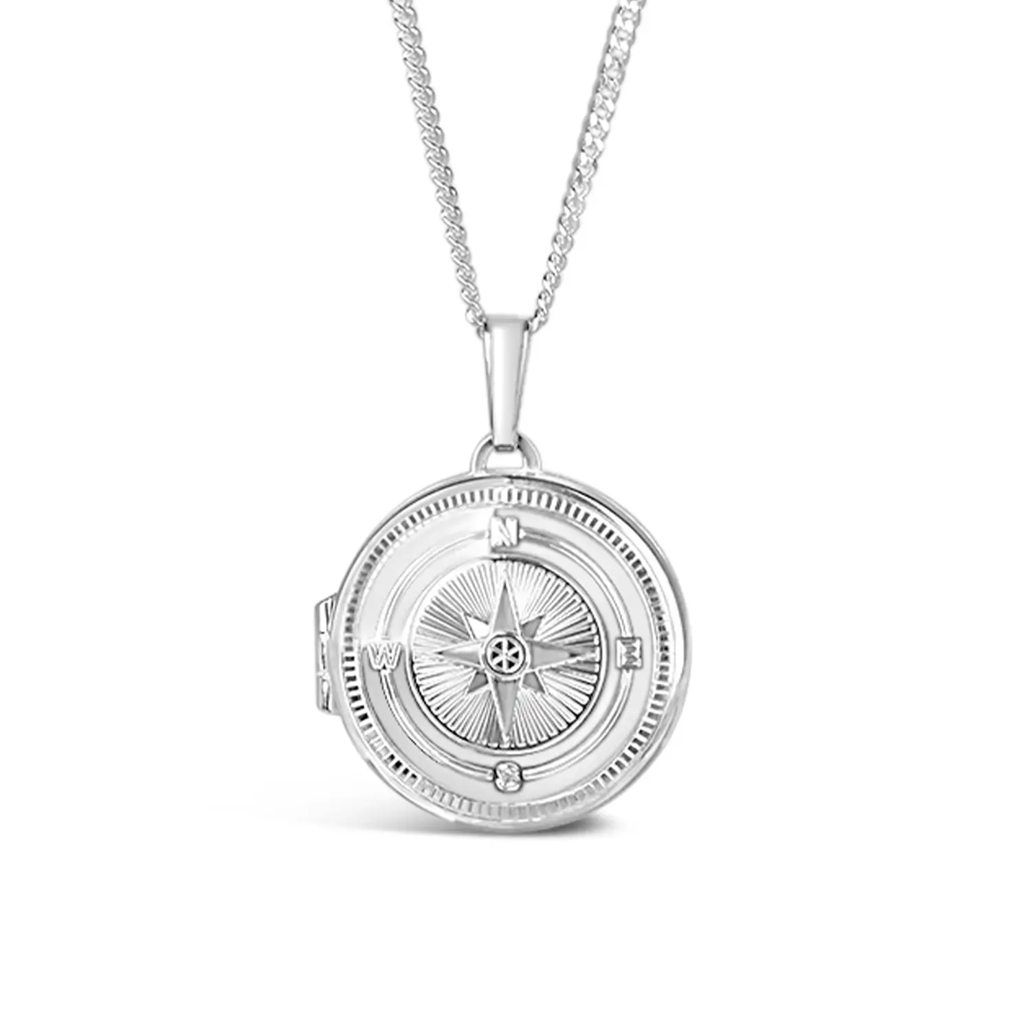 Men's Engravable Compass Locket Necklace Sterling Silver – Men's Luxury Navigation & Direction Pendant