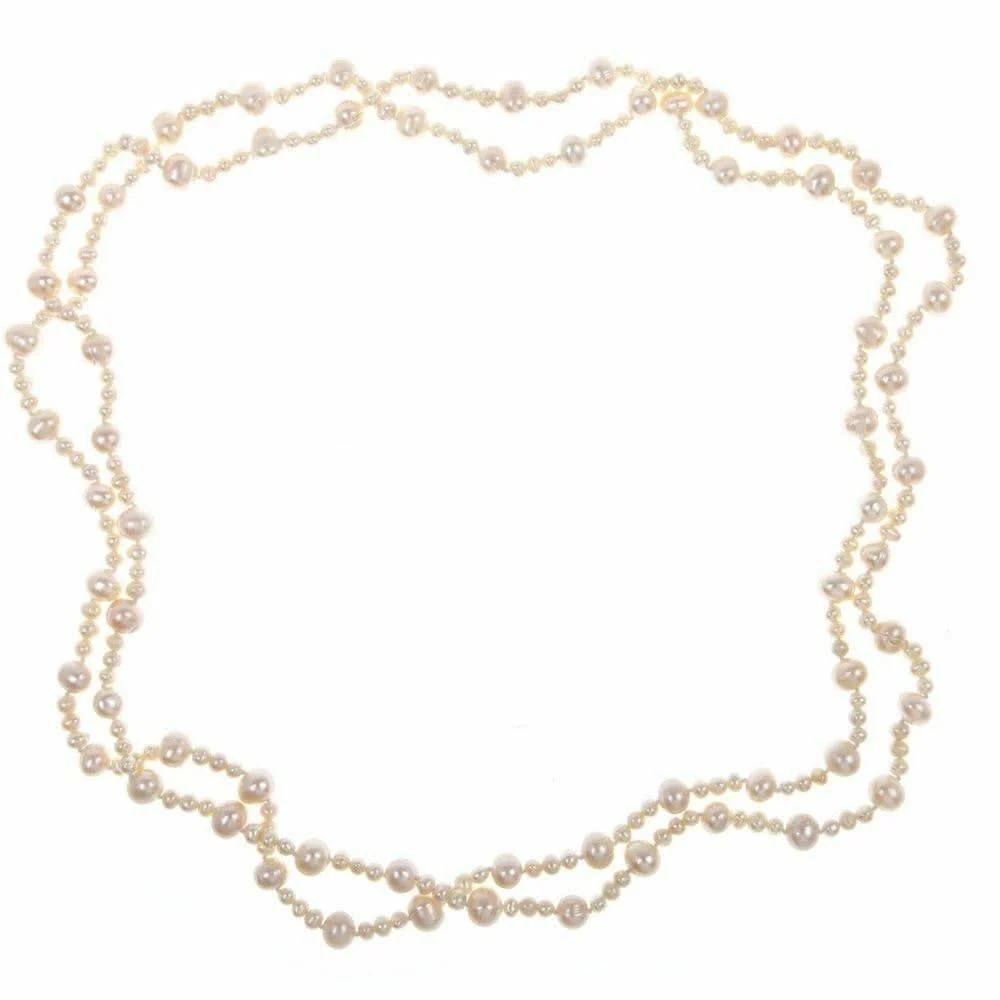 Our Eternal Pearl Necklace goes on forever. A 62-inch (1.57m) rope of large and small, pale pink freshwater pearls, which can be looped to create a series of pearl necklaces