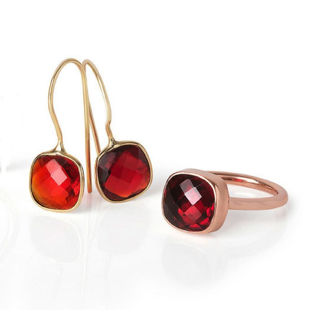 Luminous is a stunning collection of cocktail rings and earrings featuring faceted-cut gemstones. This garnet cocktail ring is perfect for stacking and can be combined with others in the collection for dramatic effect. Wear them singly, in twos or threes for maximum effect. Mix and match noble metals for an on-trend look.