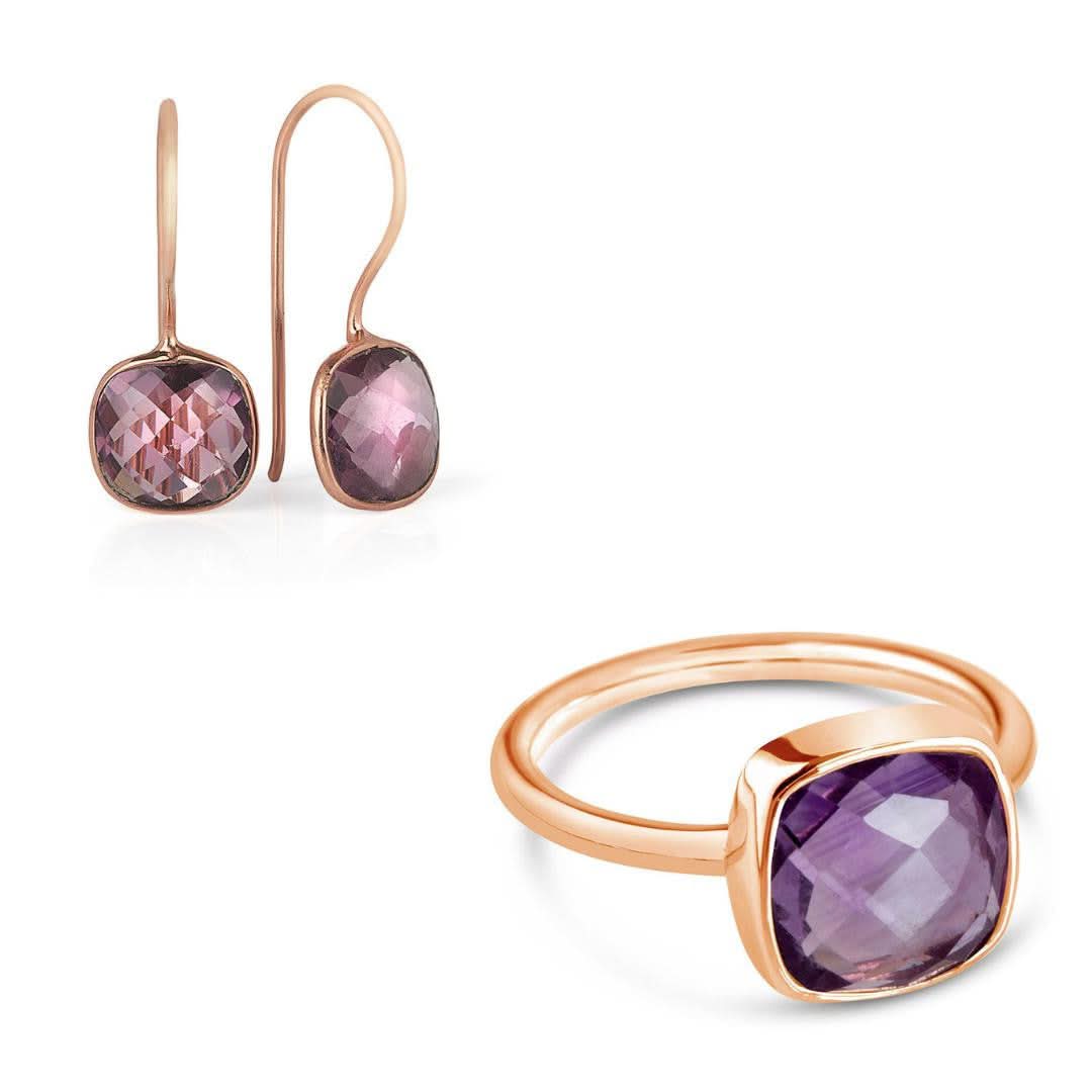 Purple Amethyst Cocktail Ring | Rose Gold
