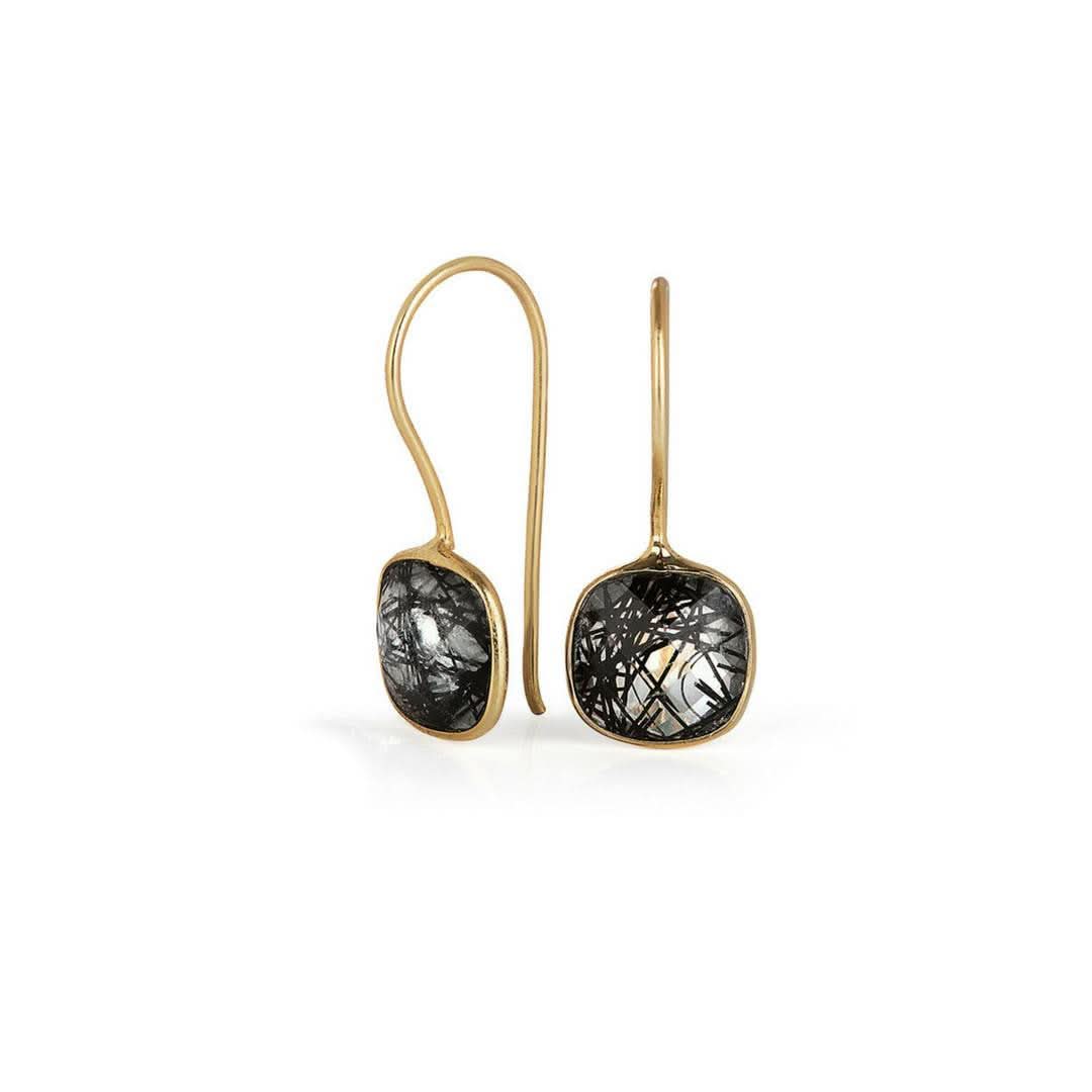 Rutilated quartz is prized for the needle-like inclusions which give each stone its unique beauty. These rutilated earrings feature faceted cut stones of great colour and clarity. These gem stone earrings are also available in rose gold and silver.