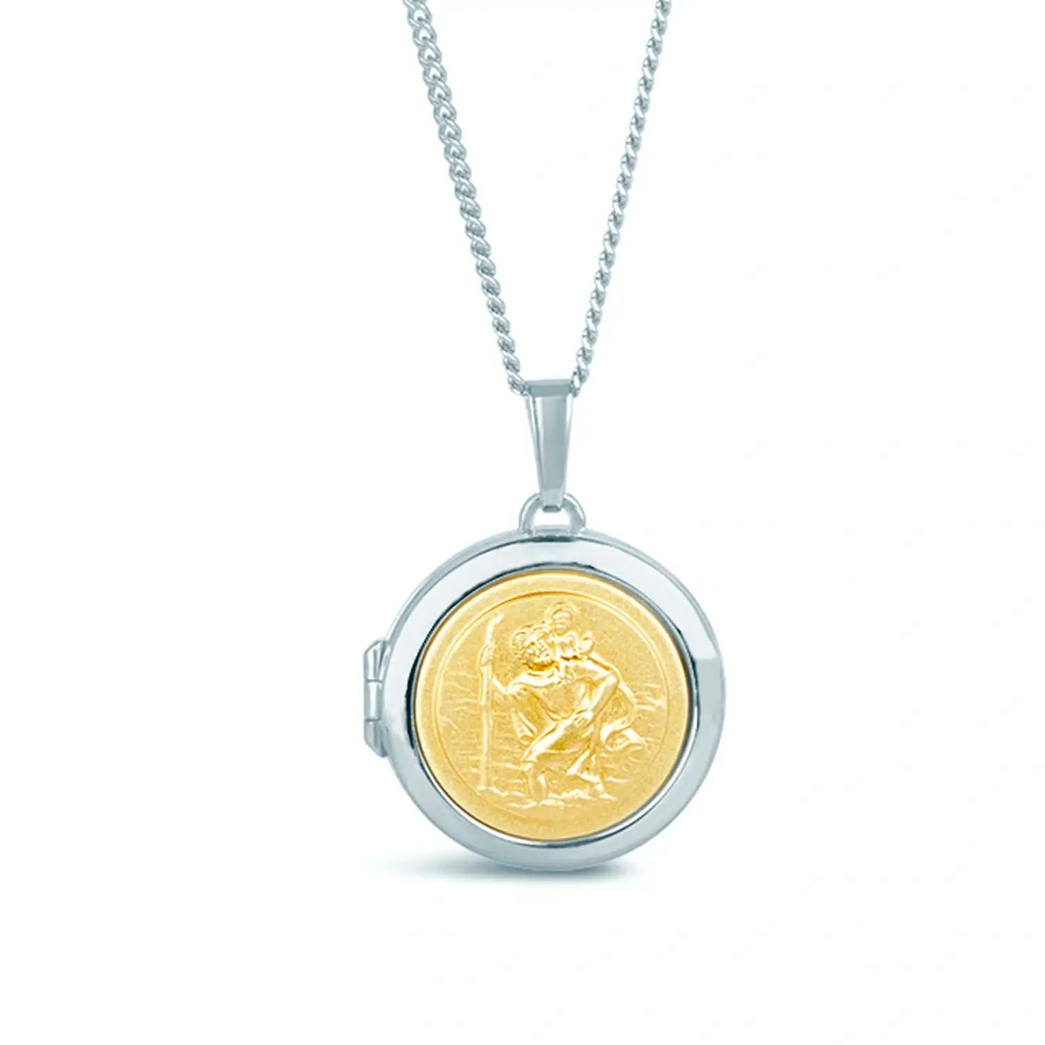 Silver and Gold Mixed Metals St Christopher Locket Necklace – Men's Travel Protection Pendant